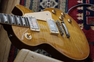 Elle pèse 3823 gr ( 8.42lb) et ma guitare de référence concernant le poids était à 8.37lb, donc je suis à une vingtaine de grammes près; difficile d’espérer mieux. Les Lollar Imperial sonnent vraiment bien.